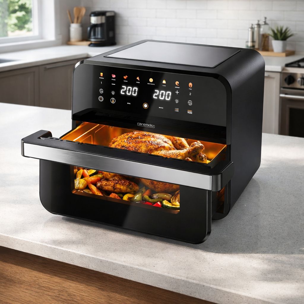 Die Arendo Heißluftfritteuse zeichnet sich vor allem durch ihre Multifunktionalität aus. Sie kombiniert klassisches Frittieren mit Heißluft mit einer integrierten Dörrfunktion, was sie zu einem echten Allrounder auf der Arbeitsplatte macht. Durch die effiziente Luftzirkulation werden Speisen außen knusprig und bleiben innen saftig, wobei deutlich weniger Fett als in herkömmlichen Fritteusen benötigt wird.