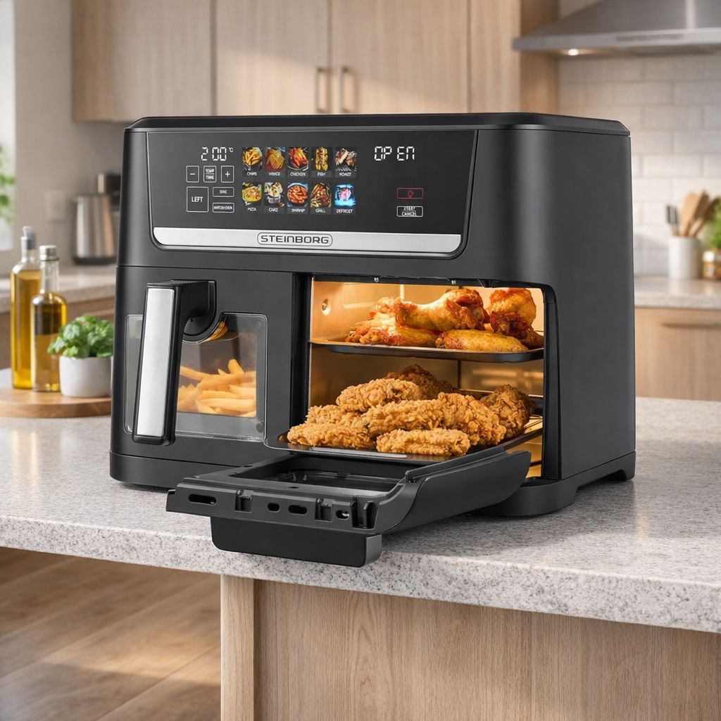 Wer seine Küche aufrüsten möchte, bekommt aktuell bei Amazon ein echtes Platzwunder zum Schnäppchenpreis. Die Steinborg XXL Heißluftfritteuse mit zwei unabhängigen Garzonen ist derzeit massiv reduziert und bietet eine effiziente, fettarme Alternative zum herkömmlichen Backofen.